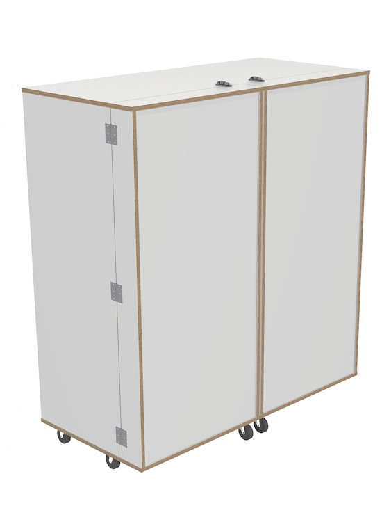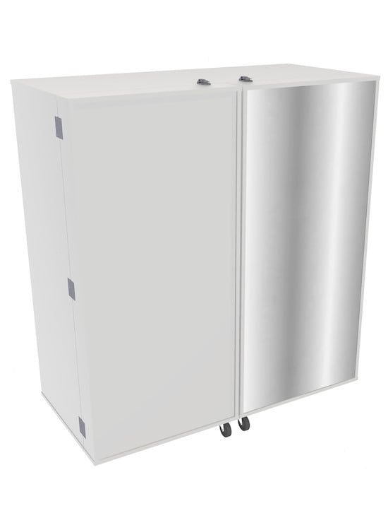Grote knutselkast volledig wit op geremde wielen met deuren.