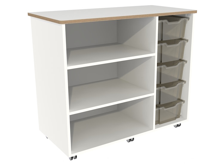 Lage verrijdbare flex-kast met 3 grote opbergvakken en ruimte voor 1 lademodule.