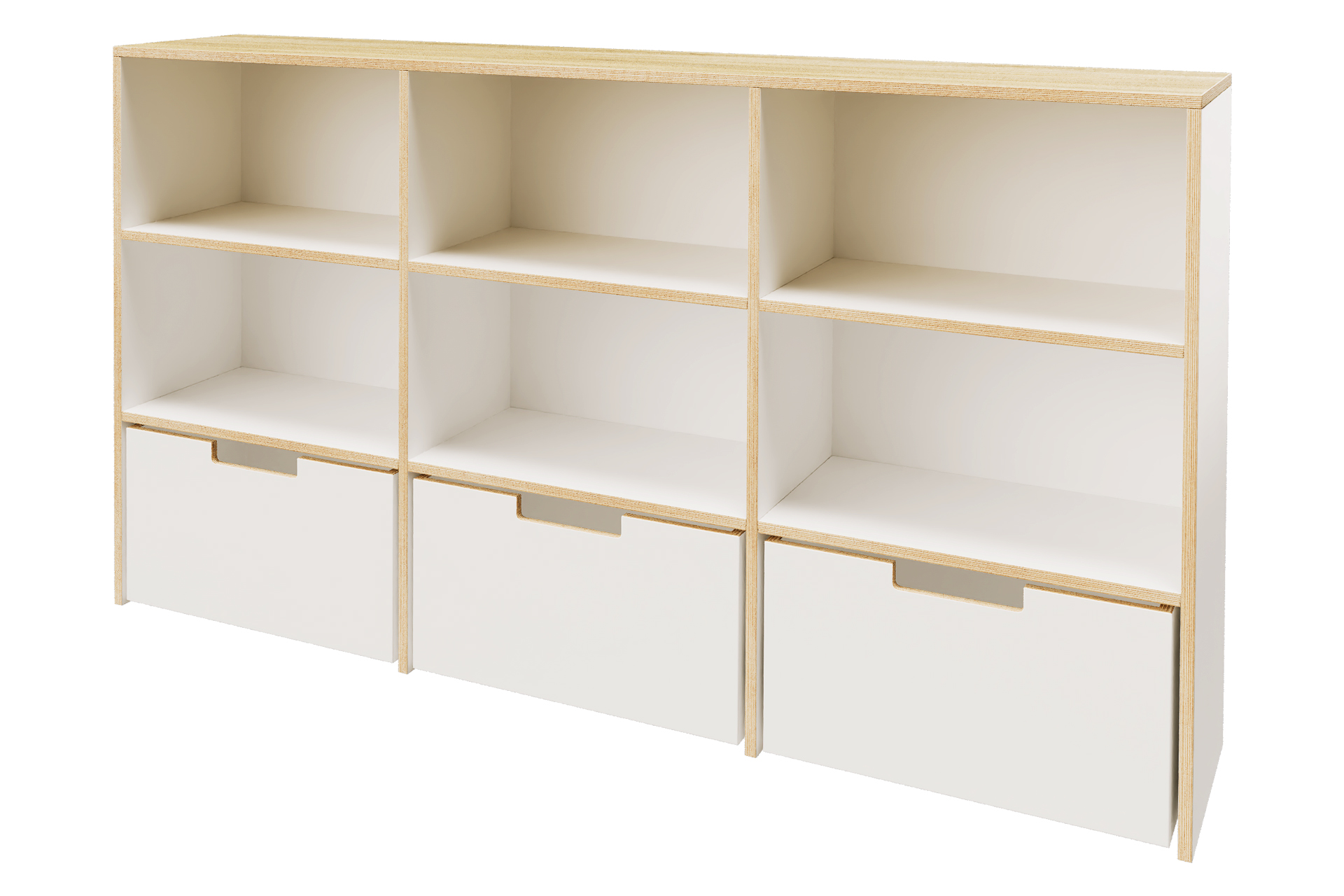 Deze kast is opgebouwd uit 18 mm berken multiplex met HPL toplaag in de kleur wit.