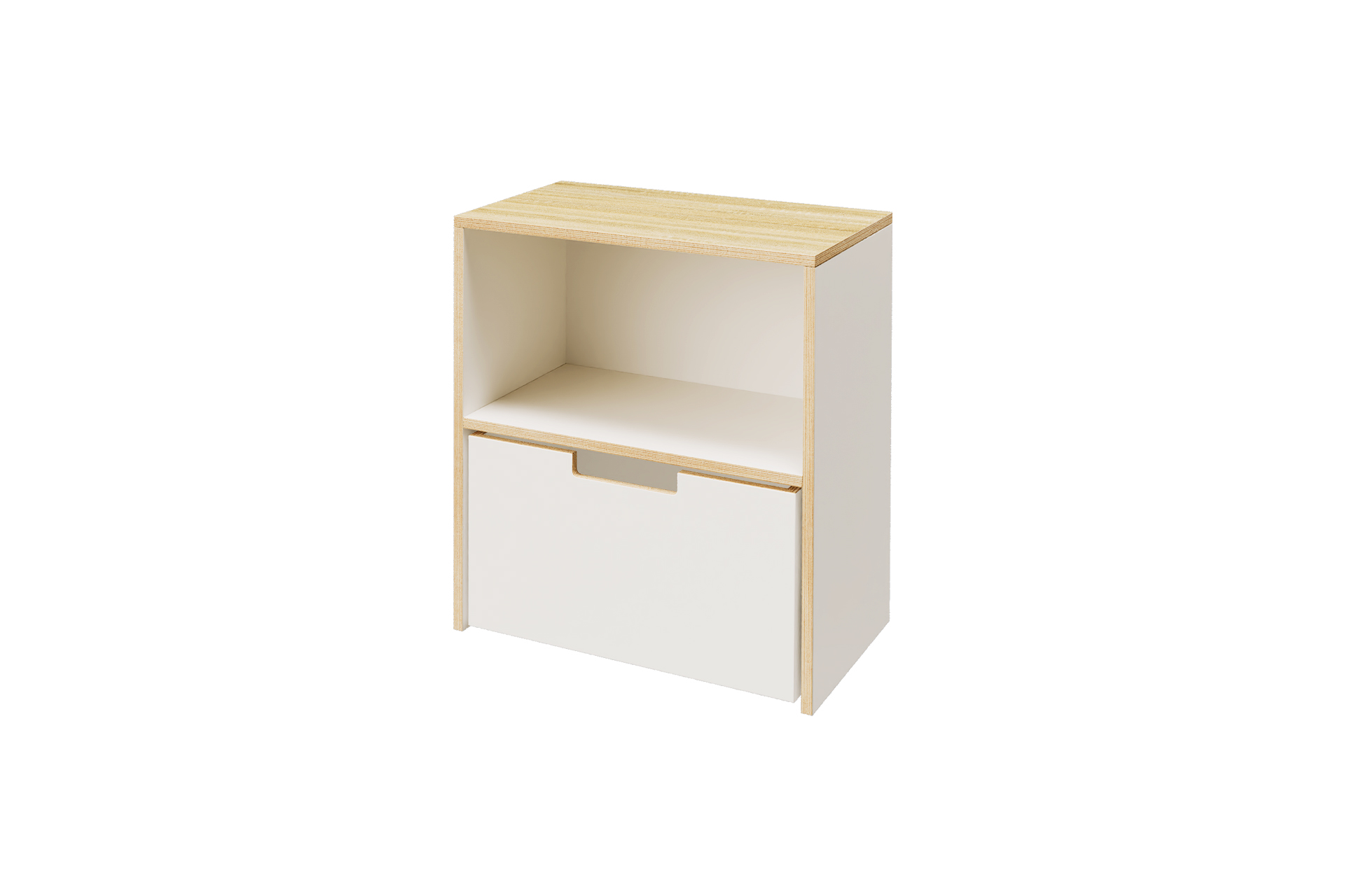 Deze kast is opgebouwd uit 18 mm berken multiplex met HPL toplaag in de kleur wit.