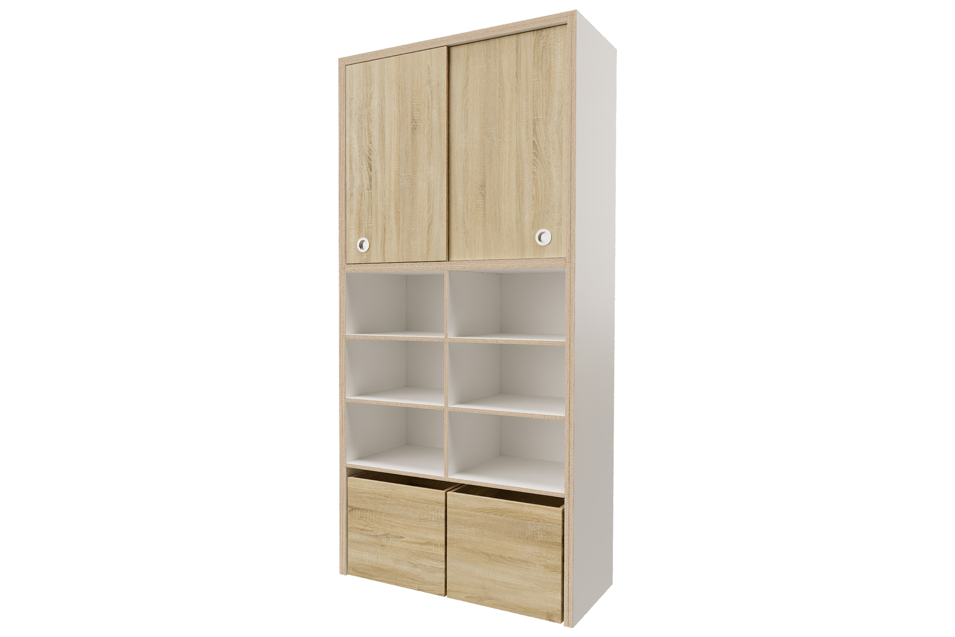 De schuifdeuren en rolbakken zijn leverbaar in een houtdecor naar keuze.