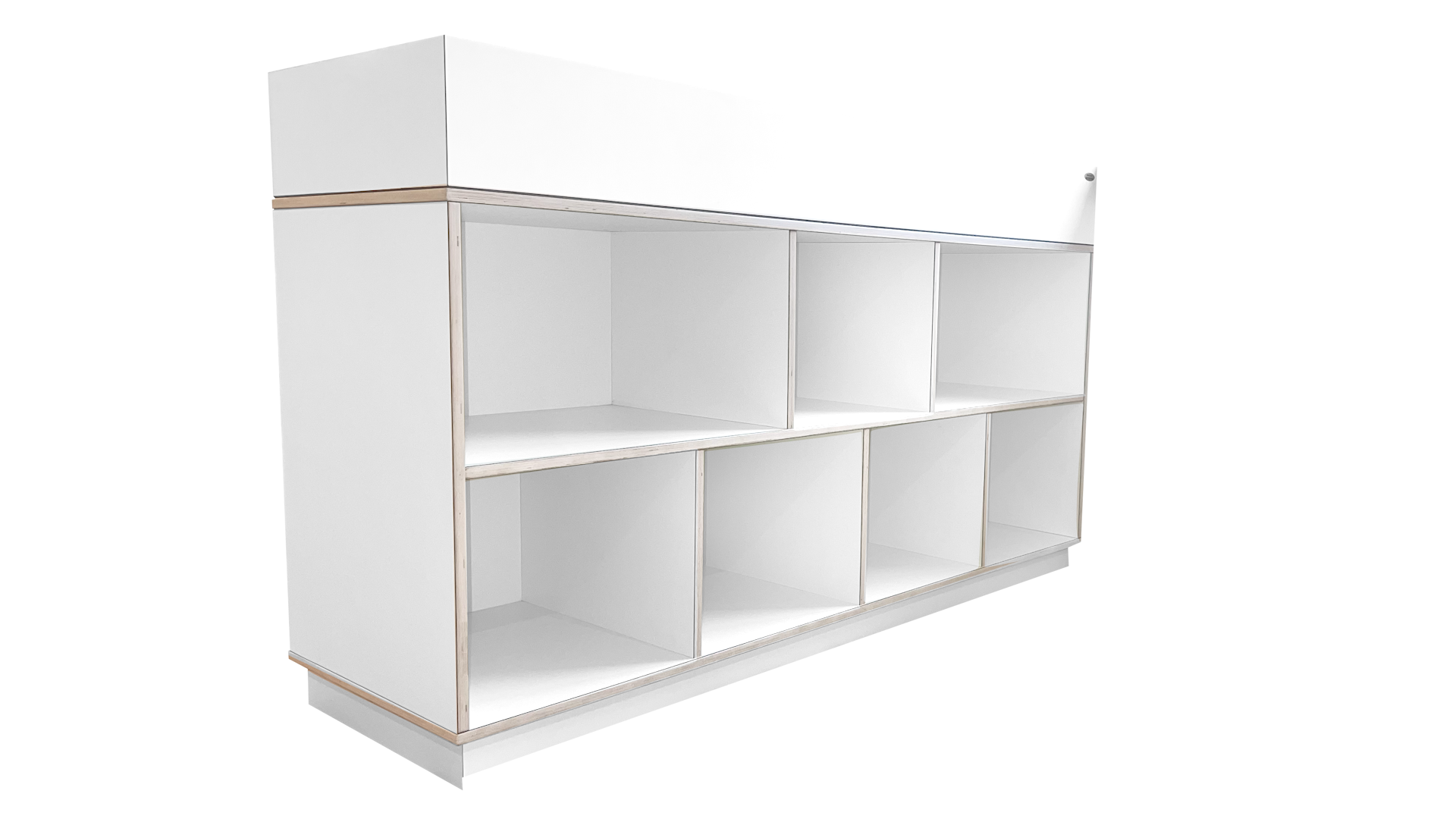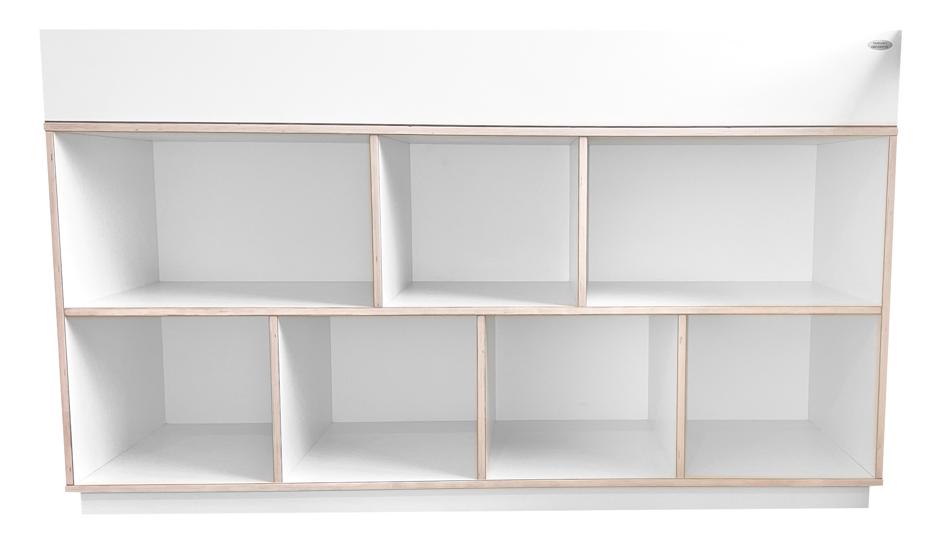 Deze kast is opgebouwd uit 18 mm berken multiplex met HPL toplaag in de kleur wit.