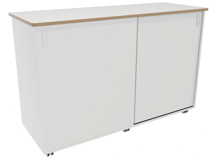 Lage verrijdbare kast met 2 schuifdeuren voorzien van een slot.