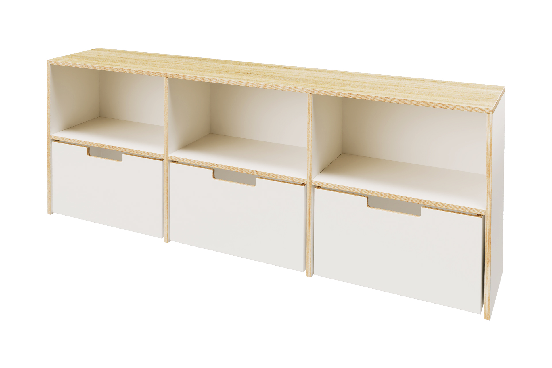 Deze kast is opgebouwd uit 18 mm berken multiplex met HPL toplaag in de kleur wit.