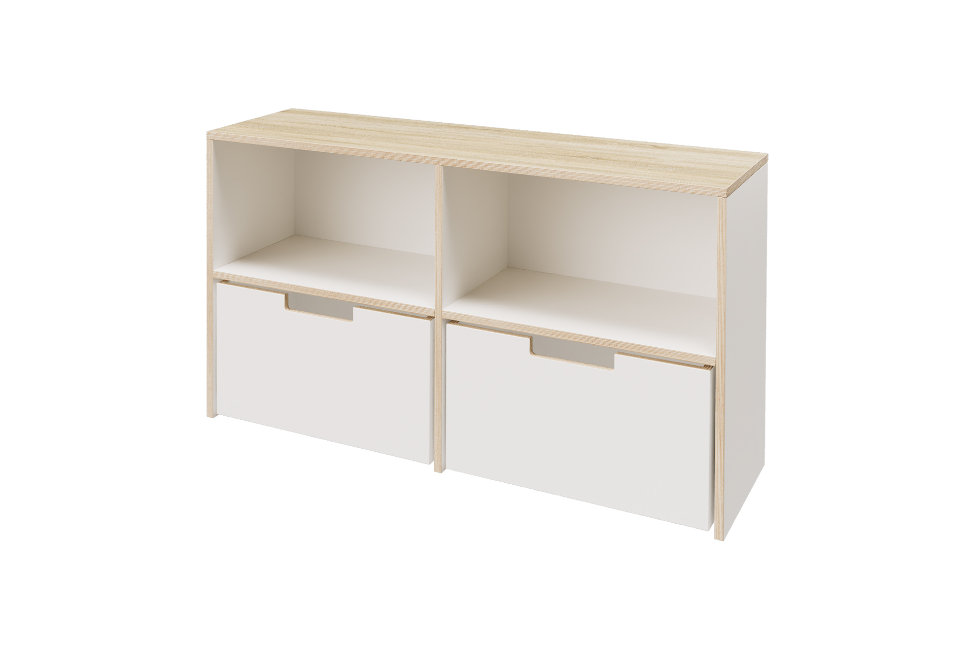Deze kast is opgebouwd uit 18 mm berken multiplex met HPL toplaag in de kleur wit.