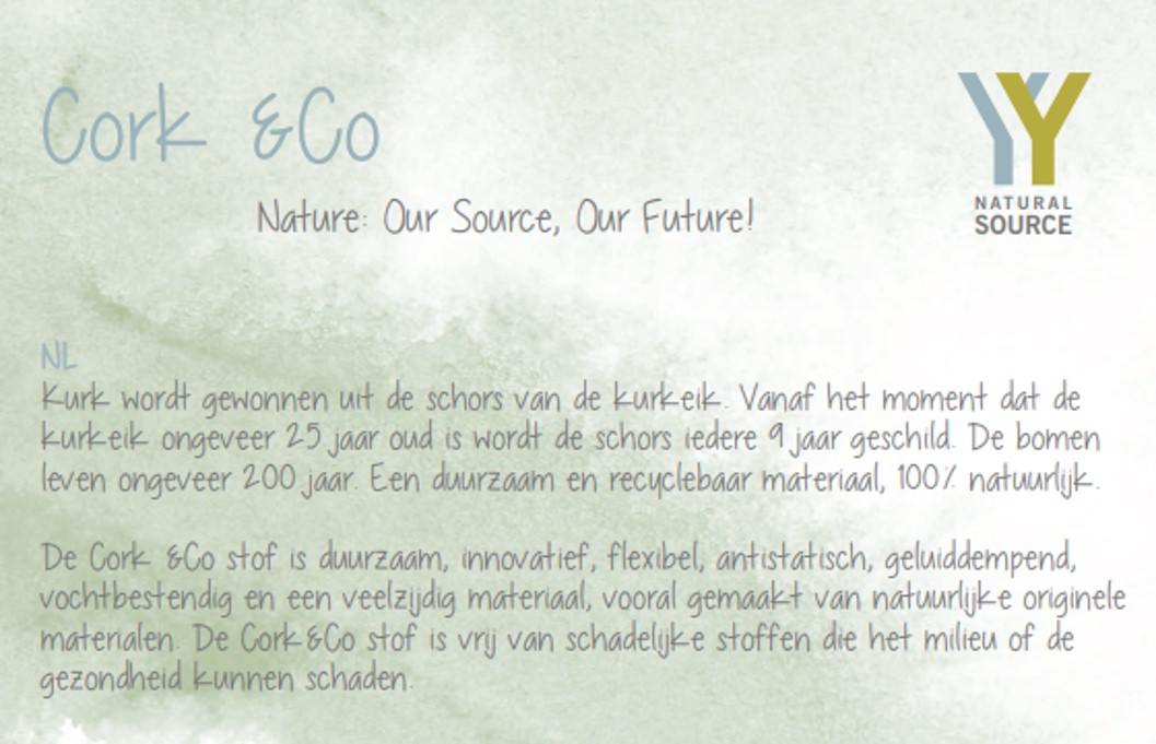 Met het oog op de natuurlijke uitstraling van het Kurk raden wij aan het materiaal regelmatig met een natte doek af te nemen.