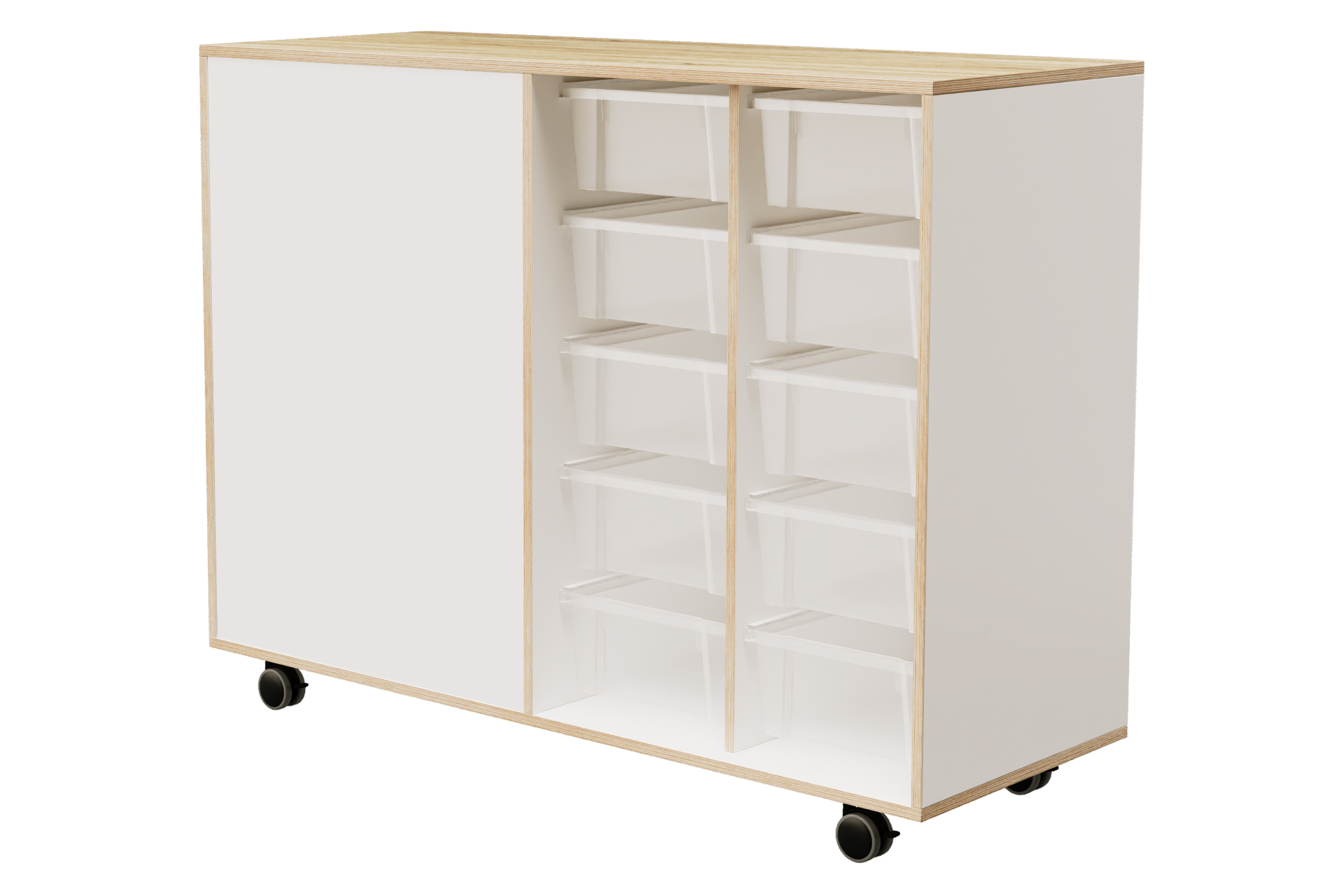 Standaard wordt de kast geleverd op een witte plint.