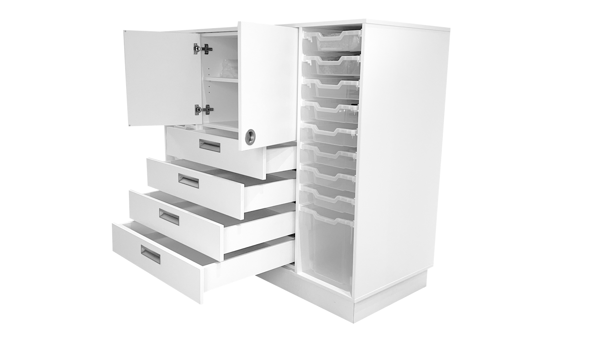 Verrijdbare knutselkast met aan de linker en rechter zijde