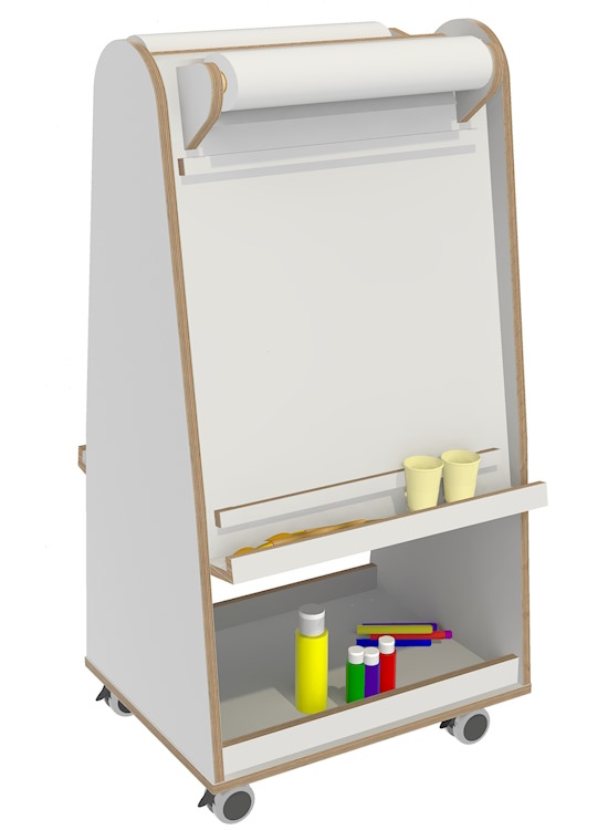 elkaar de mooiste creaties kan maken. Onderin kan je verfpotten en tekenmateriaal kwijt.