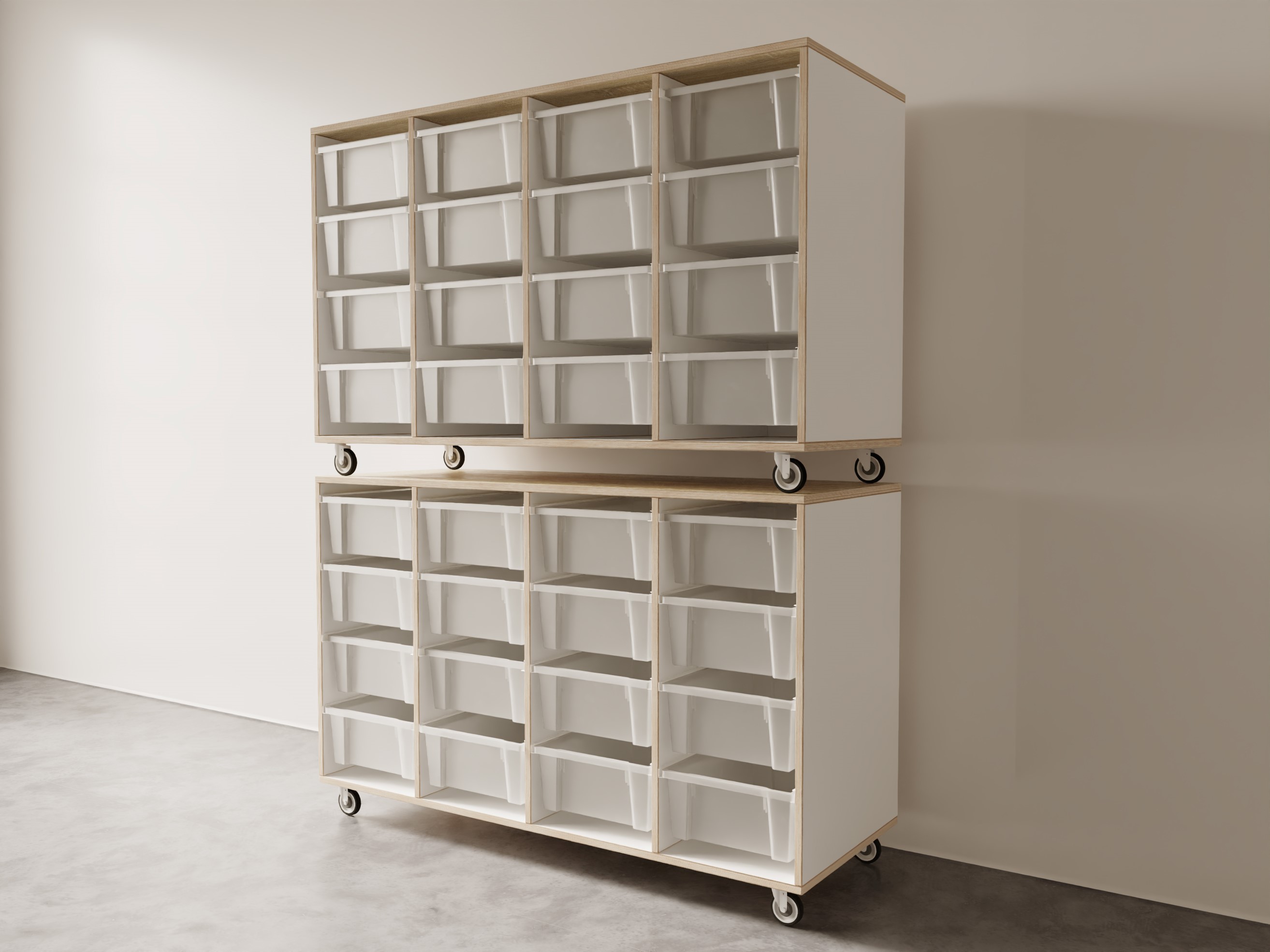 De Hoge kasten kunnen gecombineerd worden tot een grotere kastenwand.